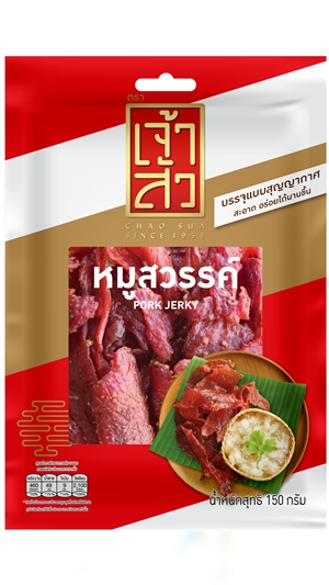 Chaosua Pork Jerky Chaosua Pork Jerky is ready to eat, complement well with steam rice, stick rice. Just tear off the pack and enjoy or simply heat up the pork jerkey. Allergy Information: Contain soy, flour,gluten Storage : Closely seal after open. Store in dry condition.