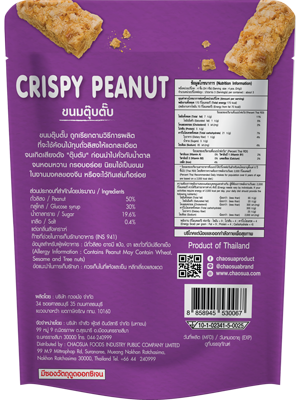 เจ้าสัว ขนมถั่วตัด ขนมถั่วตัด "เจ้าสัว" ผลิตจากวัตถุดิบคัดสรรอย่างดี และพิถีพิถัน ผลิตภายใต้กระบวนการที่สะอาด และถูกสุขอนามัย เหมาะสำหรับทุกคนในครอบครัว หรือนำไปเป็นของขัวญแด่คนที่ห่วงใย ส่วนประกอบ ถั่วลิสง 65 % น้ำตาล 20 % งาขาว 10 % กลูโคสไซรัป 5 % *ไม่ใส่สีและวัตถุกันเสีย* ข้อมูลผู้แพ้อาหาร:มีถั่วลิสง,งา,ผลิตภัณฑ์นี้ผลิตภายใต้สภาวะแวดล้อม การผลิตสินค้าอื่นที่ใช้ เม็ดมะม่วงหิมพานต์,อัลมอลด์,แป้งสาลี คำแนะนำในการรักษา : ควรเก็บในที่แห้งและเย็น หลีกเลี่ยงแสงแดด